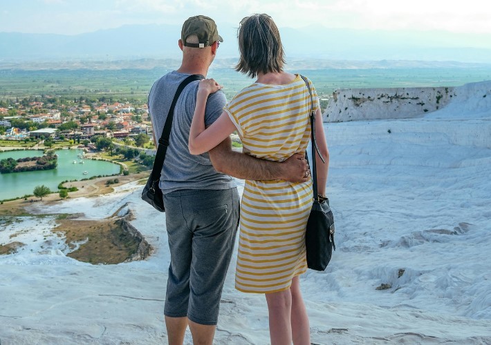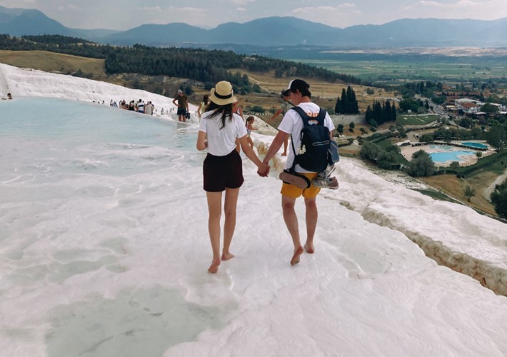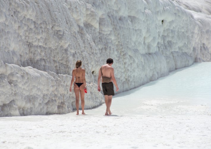 Разглеждане на белите травертини, древния град Хиераполис и басейна на Клеопатра с възможност за плуване.