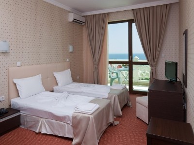 ДВОЙНА СТАЯ 2+0 ИКОНОМИЧНА БЕЗ БАЛКОН: Приблизителна площ 20 м2. Стаите са оборудвани с две единични легла или едно двойно, в някои стаи има и разтегателен фотьойл(190/70). На разоложение са още индивидуален климатик, мини-хладилник, телевизор с цифрова телевизия, безплатен Wi–Fi интернет и модерно оборудвана баня и тераса. Максимално настаняване на 2 възрастни.